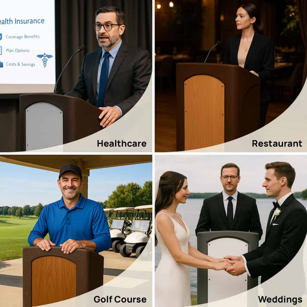 Do you need a podium personalized with your company logo or the ability to change the branding for each event? No problem. SoapBoxx has you covered with our 2 podium personalization options.