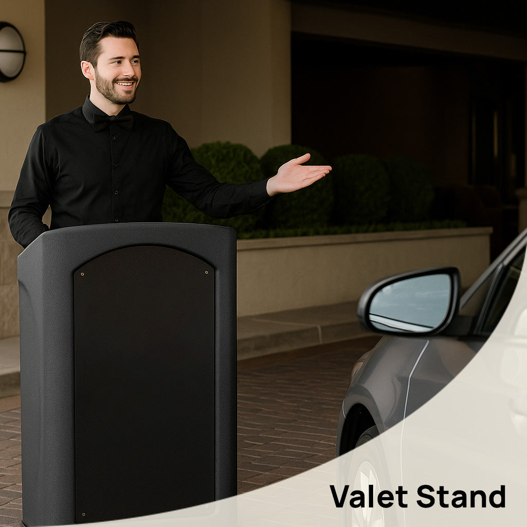 - Front Sign Holder: Attached 8.5" x 11" black framed sign holder. To use simply print out a standard letter-size sign from any computer and slide it into the sign holder. This means you can change the company name, logo, event name, greeting, or messaging in minutes. Perfect for Trade Shows, Wedding Venues, Business Presentations, Motivational Speakers, Book Readings, or any other event that requires new personalization per customer or event. Plus, this option is extremely affordable.